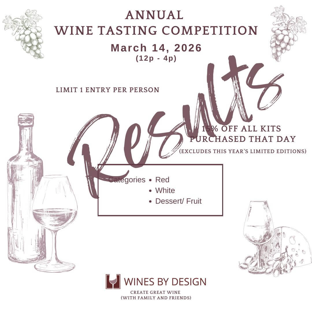 As a quick reminder, the winner in each category receives a $50 gift certificate to Wines By Design, and the wine with the highest overall number of votes earns an additional $50 gift certificate.