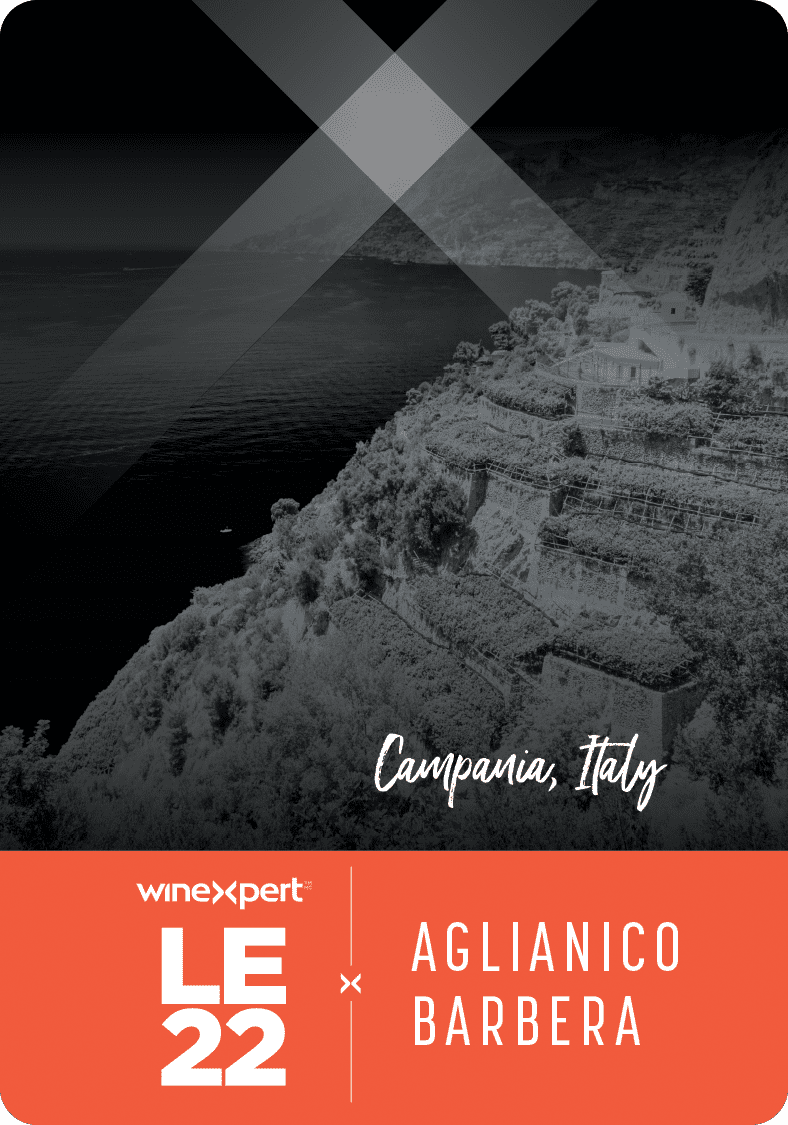 Aglianico is considered one of the three greatest Italian varietals, known to produce refined, complex wines with firm tannin. Its richness and structure make it popular for blending. In contrast, Barbera is popular for producing fruity wines with low tannin and high acidity. The combination of these two Italian varietals creates a balanced blend with big personality. Dominant flavors of black cherry, pepper spice, blackberry, and plum are enhanced with licorice, dried herbs, and a light mineral note. This is a wine to sit back, sip, and savor.